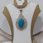 مدال نقره شبکه کاری اصفهان نگین لوزی آبی رنگ