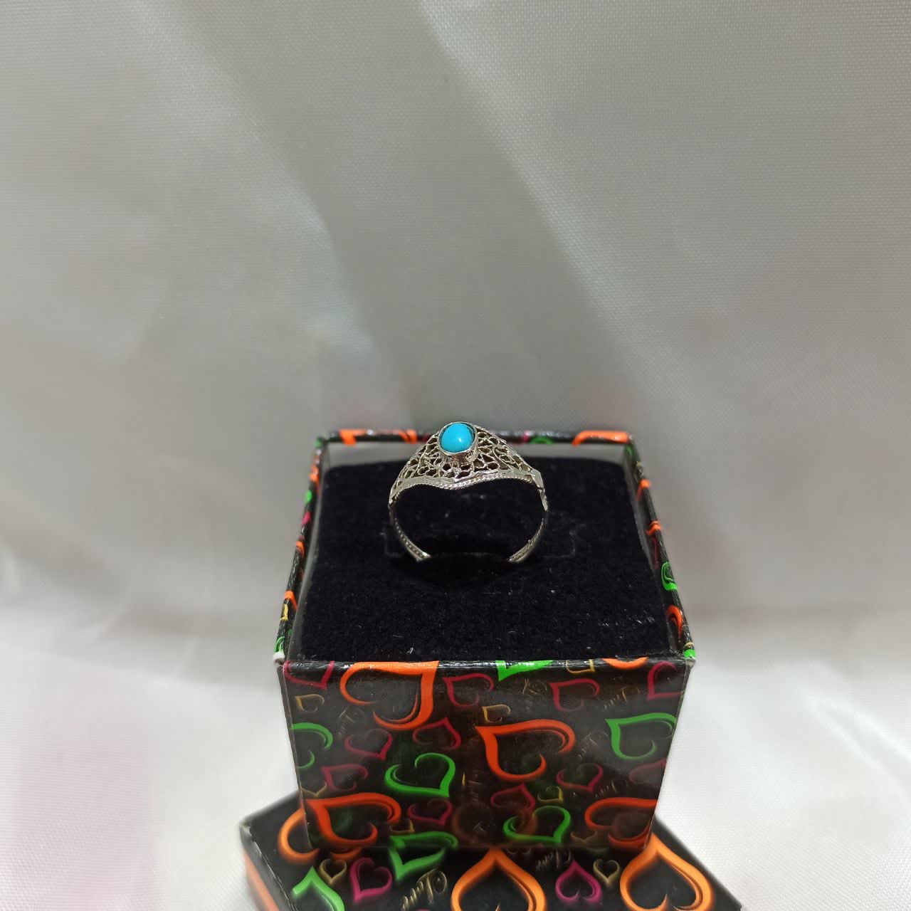 انگشتر نقره شبکه کاری اصفهان نگین فیروزه