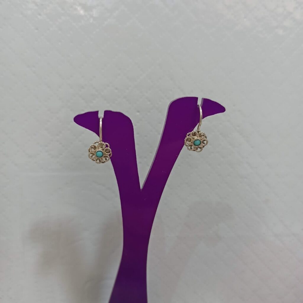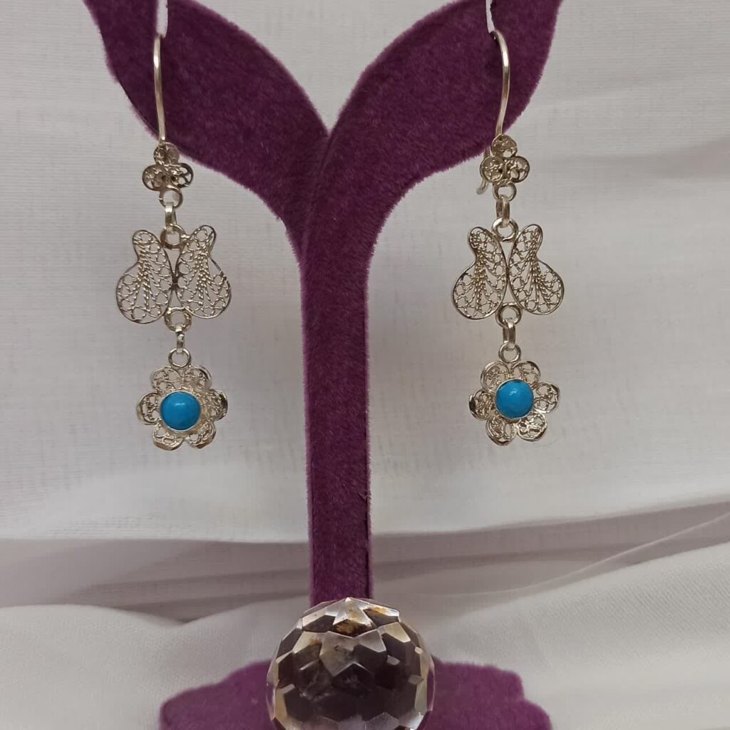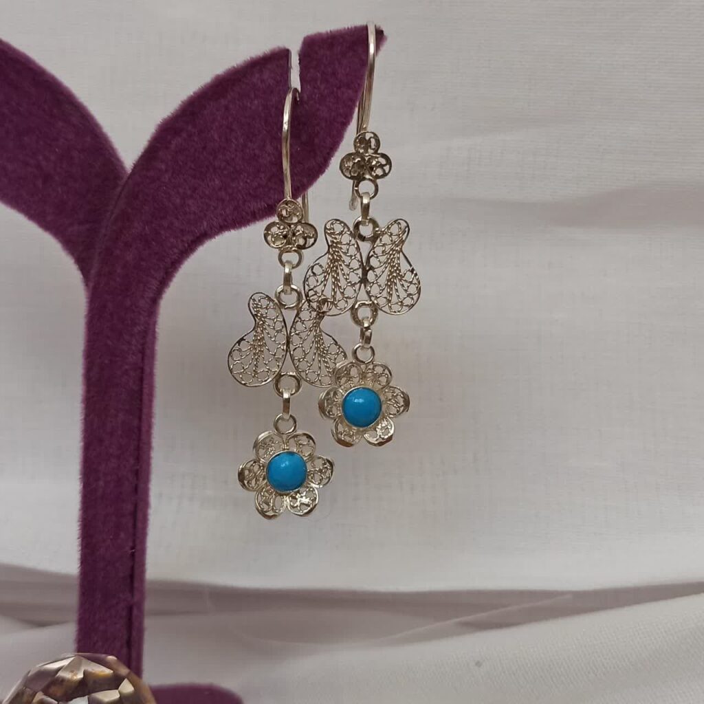 گوشواره نقره ملیله نگین فیروزه نیشابور
