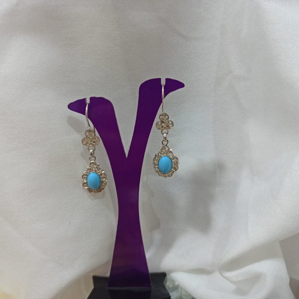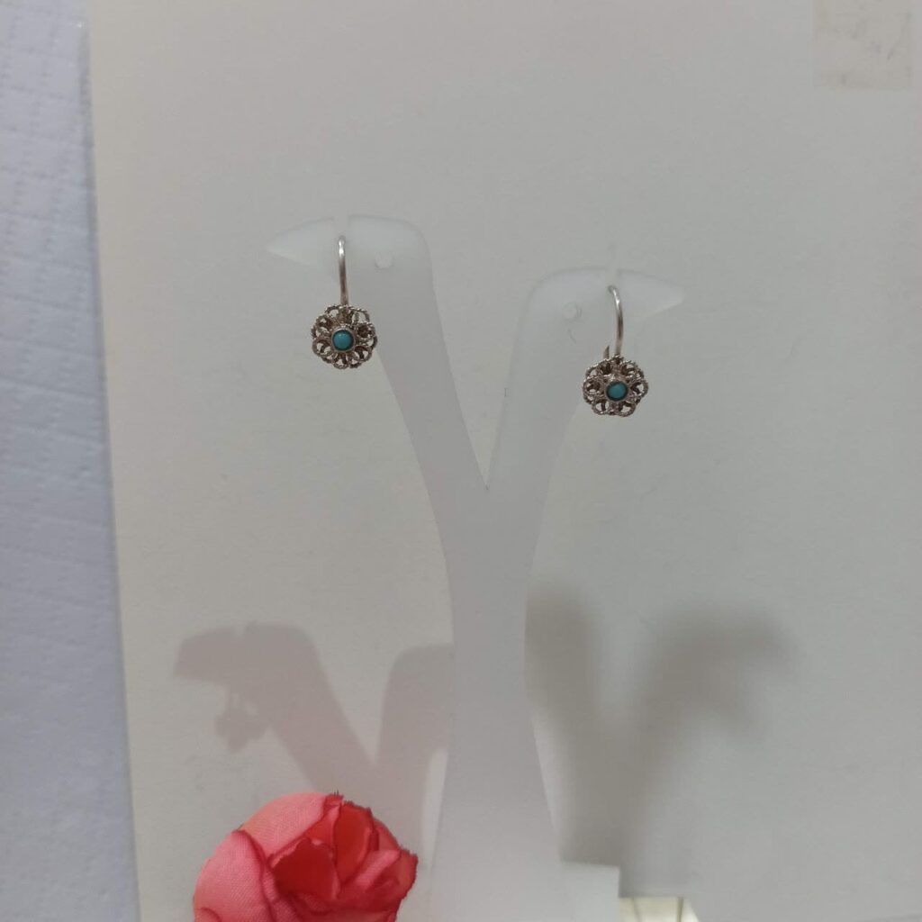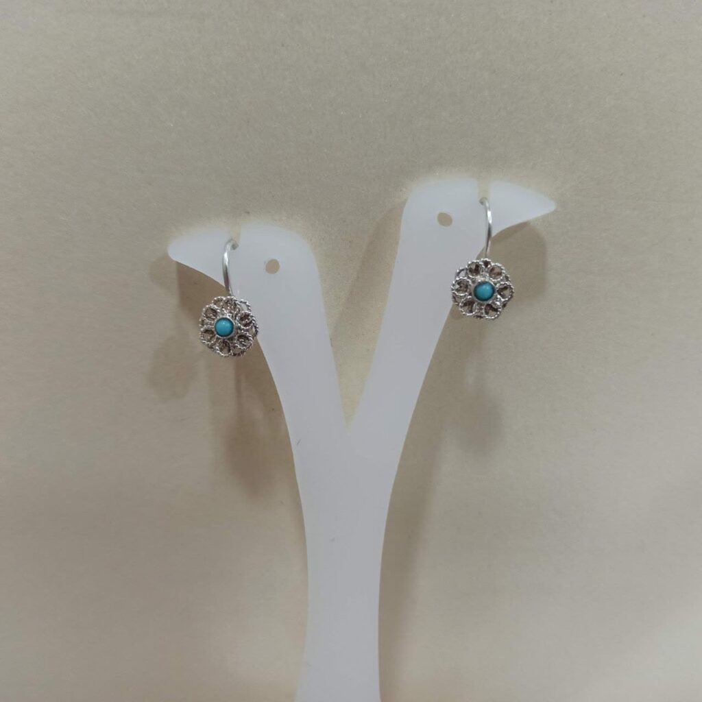 گوشواره نقره ملیله نگین فیروزه نیشابور