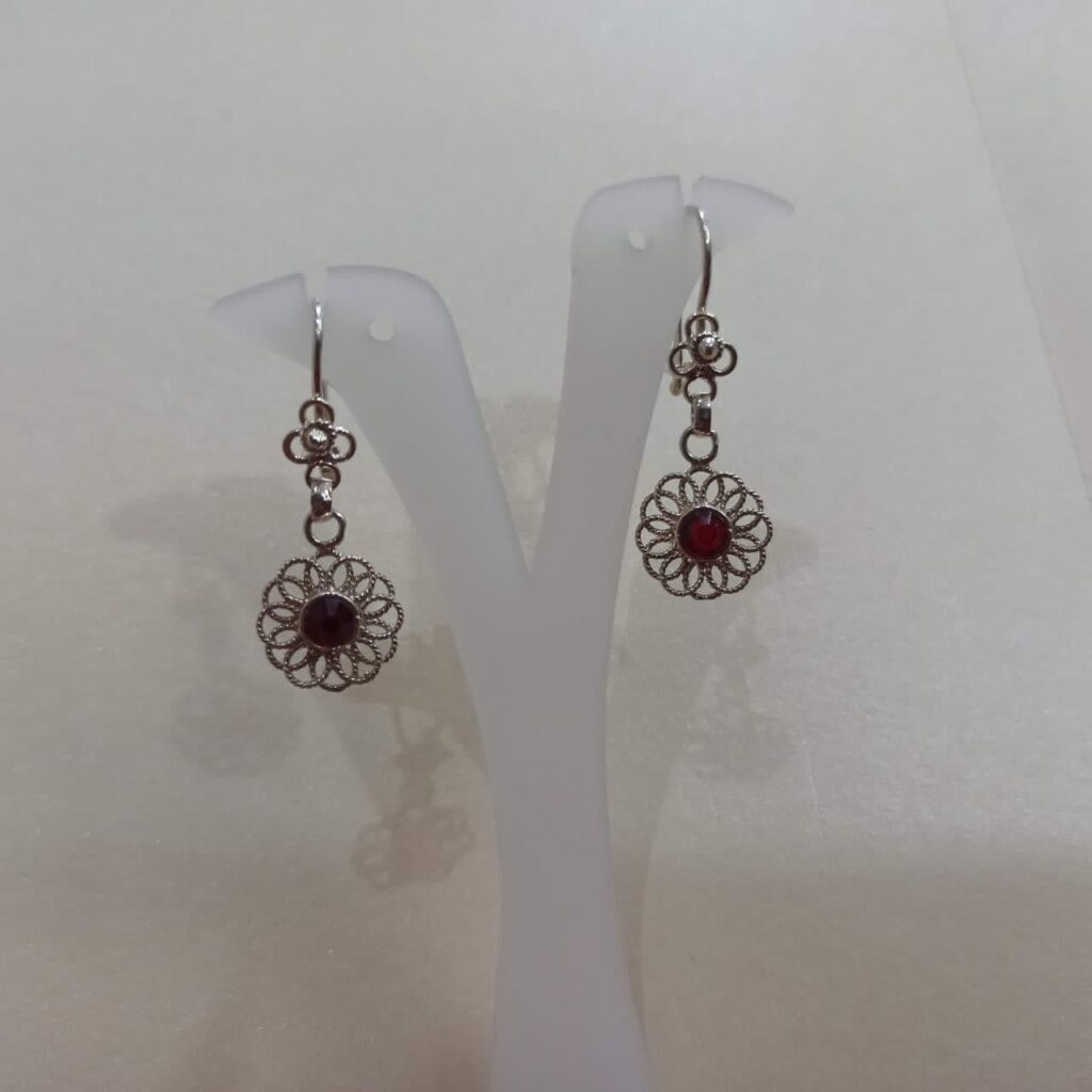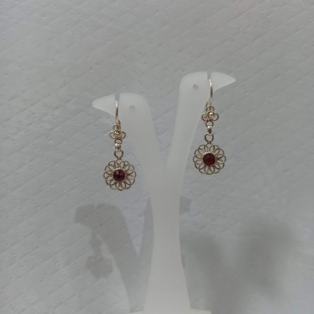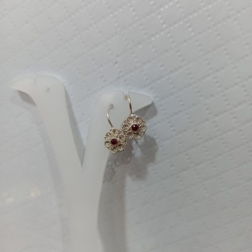 گوشواره نقره ملیله کاری اصفهان گُل آویز نگین قرمز