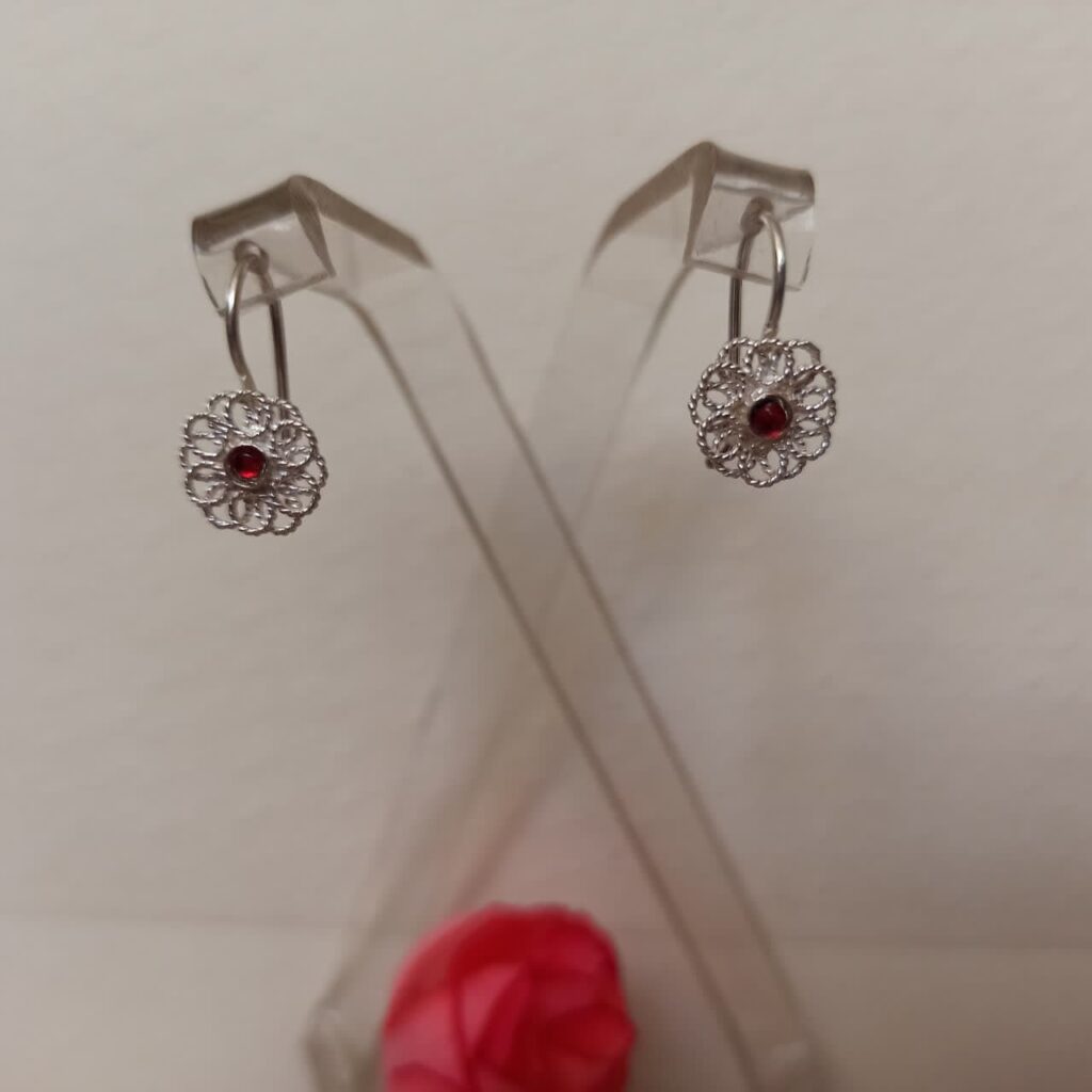 گوشواره نقره دستساز نگین قرمز یاقوتی