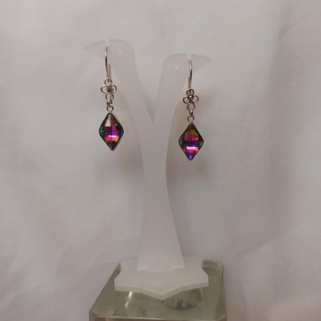 گوشواره نقره نگین لوزی هفت رنگ